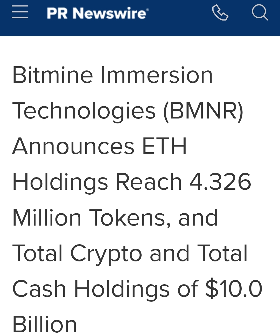 비트마인(BitMine), 이더리움 추가 매수로 보유량 432만 개 돌파… 전체 공급량 3.58% 확보